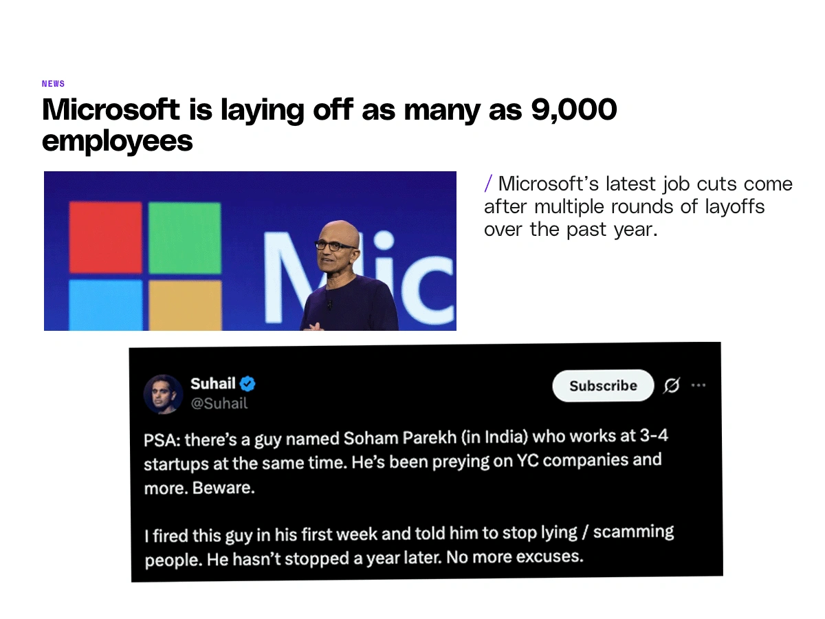 The corporate world isn't evil neither are corporations. Even when they act so devilish, it isn't evil or when they'd invent and freely distribute the cure for cancer, it isn't righteousness. It's just business. They have no moral obligation, only a business obligation. Microsoft fired 9,100 people this year, and about 8,000 in 2024. It's just business. Soham Parekh, minding his own business, moonlighted for multiple companies simultaneously. It's just business.