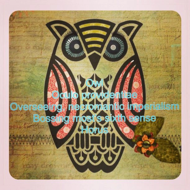 OwlYoupele/14 January, 20151 min readOwlOculo providentiaeOverseeing, necromantic imperialismBossing most's sixth senseHorus